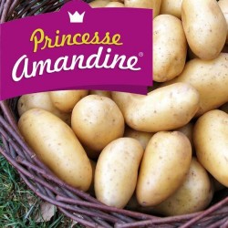 - AMANDINE - 6 € / 1,5 kg (60 plants) - Variété de pommes de terre primeurs. Belle présentation et une tolérance à la galle. Il faut faire attention à l'arrachage de ne pas l'abimer - Conservation relativement courte - Usage : salade, vapeur.